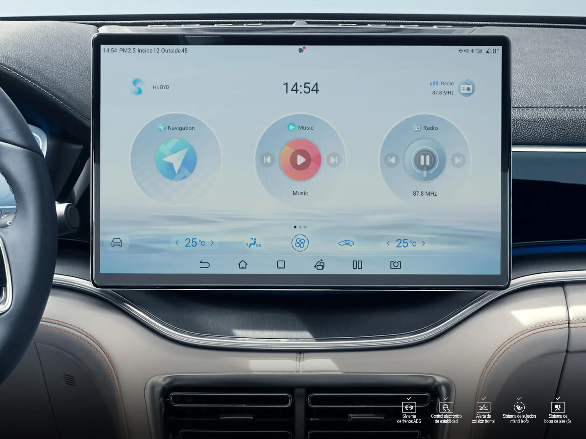 Este vehículo está equipado con avanzadas capacidades inteligentes, como el sistema de reserva de carga y el sistema de cabina inteligente de BYD. Nuevo sistema de acceso por NFC, lo cual facilita la entrada al vehículo y el Head-Up Display (W-HUD) en el parabrisas, el cual mejora la experiencia del conductor al no levantar la vista.