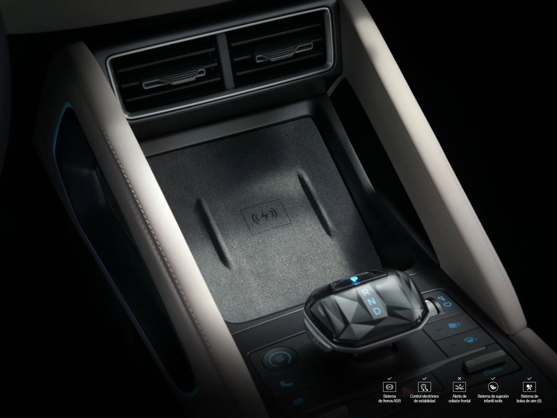 Incluye un volante tapizado premium y multifunción con control crucero, un tablero de instrumentos en LCD de 8.8 pulgadas, cargador inalámbrico para celular, parasoles delanteros con espejo y luz, cubre maletas y tomacorriente de 12V.